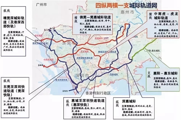 深莞惠四横两纵一支城际轨道网