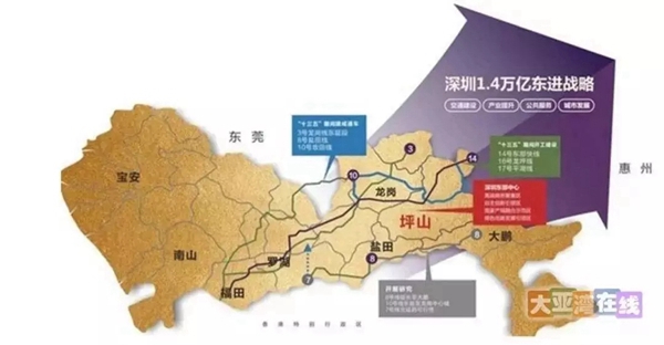 2016年5月,深圳推出东进战略,将投入1.4万亿将东部地区发展成为深圳乃至更大区域的新发展极;大亚湾作为深圳东进的桥头堡,其战略价值也随之提升。